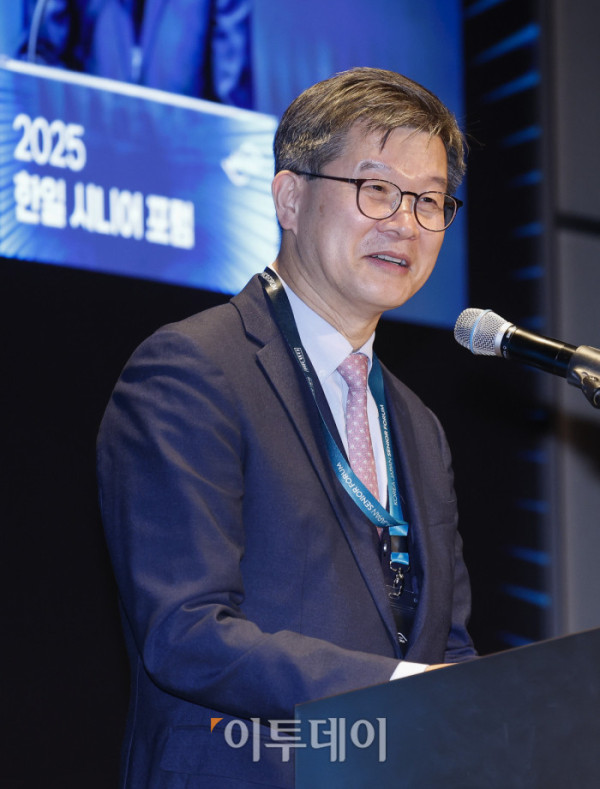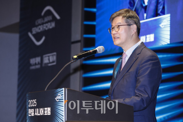 ▲한일시니어포럼 조직위원장인 이기일 전 보건복지부 차관이 11일 서울 강남구 웨스틴 서울 파르나스 아틀라스홀에서 열린 2025 한일 시니어 포럼에서 환영사를 하고 있다. 이투데이가 주최하고 이투데이피앤씨와 브라보마이라이프가 주관하는 한일 시니어포럼은 시니어 이코노미를 핵심 주제로, 양국의 정책적 과제와 산업적 해법을 심도 있게 논의하는 국제 교류의 장으로서 시니어 비즈니스가 미래 성장을 견인하는 주체임을 강조하며, 생태계 활성화를 위한 정책·비즈니스·기술·문화 전반에서 필요한 혁신과 전환점을 모색한다. 조현호 기자 hyunho@