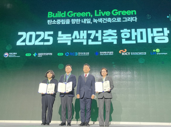 서울주택도시개발공사(SH)가 공급한 ‘고덕 온빛채’가 국토교통부가 주최하고 한국건설기술연구원이 주관한 ‘2025 대한민국 녹색건축대전’에서 준공 부문 국토교통부 장관상을 받았다고 11일 밝혔다.