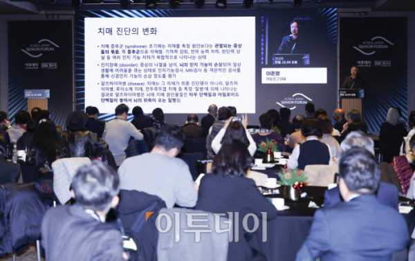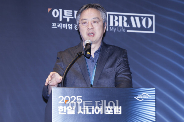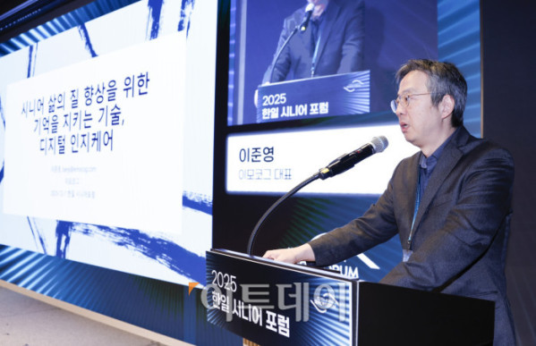 ▲이준영 이모코그 대표가 11일 서울 강남구 웨스틴 서울 파르나스 아틀라스홀에서 열린 2025 한일 시니어 포럼 세션2 시니어 삶의 질 향상의 두 축: 사회참여와 건강관리에서 '시니어 삶의 질 향상을 위한 기억을 지키는 기술, 디지털 인지케어'를 주제로 발표를 하고 있다. 이투데이가 주최하고 이투데이피앤씨와 브라보마이라이프가 주관하는 한일 시니어포럼은 시니어 이코노미를 핵심 주제로, 양국의 정책적 과제와 산업적 해법을 심도 있게 논의하는 국제 교류의 장으로서 시니어 비즈니스가 미래 성장을 견인하는 주체임을 강조하며, 생태계 활성화를 위한 정책·비즈니스·기술·문화 전반에서 필요한 혁신과 전환점을 모색한다. 조현호 기자 hyunho@