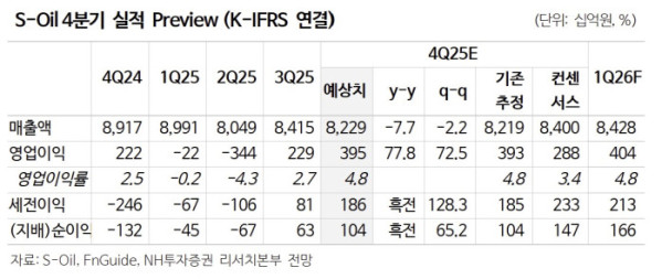 최 연구원은 “내년 1분기에도 유가가 안정적 흐름을 보이는 가운데 OSP가 추가로 하락해 영업이익 강세가 지속될 것”이라고 전망했다.