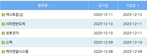 13일 한국거래소에 따르면 이번 주 투자경고종목으로 지정된 종목은 △케이엔알시스템(9일) △스맥(10일) △성호전자ㆍ사피엔반도체(11일) △넥스트칩(12일) 등이다.