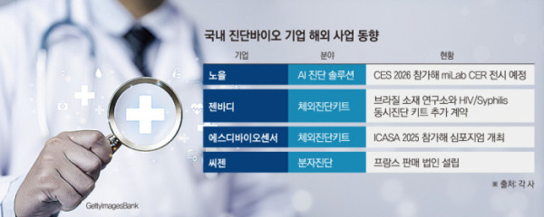14일 국내 진단바이오 업계에 따르면 최근 노을과 젠바디는 미주 대형 시장 공략에 나섰다. 노을은 내년 1월 미국 라스베이거스에서 열리는 세계 최대 가전·정보기술(IT)전시회 CES2026에 참가해 인공지능(AI) 기반 자궁경부암 진단 솔루션 마이랩(miLab) CER을 전시한다. 젠바디는 브라질 공공기관과 신속진단키트 대규모 추가 공급 계약을 맺었다.