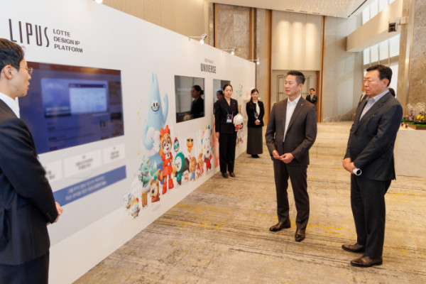 회의장에는 각 계열사의 디자인 전략 및 혁신 사례를 소개하는 전시 부스도 마련됐고, 신 회장은 이 실장의 설명을 들으며 찬찬히 둘러봤다. 디지털 환경 변화와 사업군 별 특성에 맞춰 고도화한 '그룹 CI 가이드라인 2.0', 과거 롯데웰푸드 심볼이었던 햇님마크 등 롯데가 보유한 IP 및 헤리티지 자산을 기반으로 디자인 IP 활용도를 높이고 강화하기 위한 '디자인 IP 밸류업 전략', 그룹 헤리티지에서 영감을 받아 개발한 '롯데 시그니처 향 개발' 사례 등이 전시됐다.