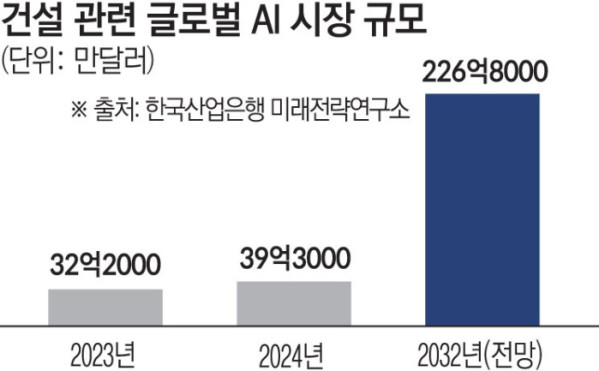 전문가들은 글로벌 건설 시장에서도 AI 도입 속도가 빨라지는 만큼, 기술 경쟁력이 곧 생존 경쟁력으로 이어질 것으로 보고 있다. 한국산업은행 미래전략연구소에 따르면 건설 관련 AI 시장 규모는 2023년 32억2000만 달러에서 2024년 39억3000만 달러로 성장했으며, 2032년에는 226억8000만 달러까지 확대될 것으로 전망된다.