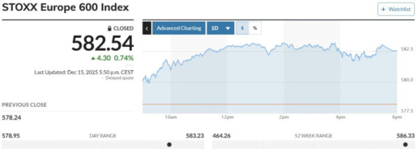 ▲스톡스유럽600지수 15일(현지시간) 582.54. (마켓워치)