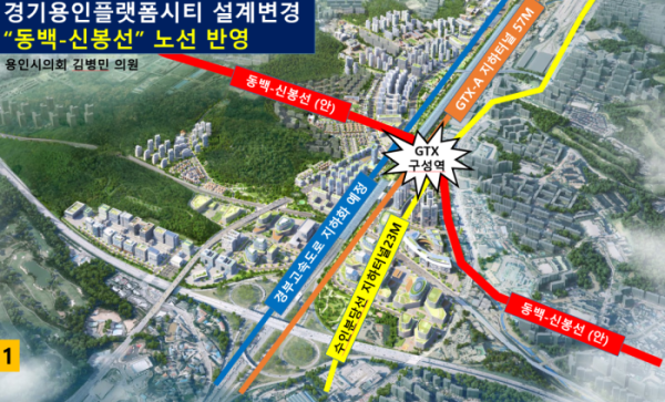 먼저 김 의원은 GTX 구성역을 관통하는 노선 특성을 반영한 선제적 설계보완의 필요성을 제기했다. GTX-A노선, 수인분당선, 경부고속도로 지하화, 방음터널 설치 등 대형사업이 중첩되는 구성역 일대는 향후 철도공간 확보가 핵심 쟁점이 될 수밖에 없는 구간이다. 그는 “플랫폼시티 설계 단계에서부터 동백–신봉선 통과 공간을 반영해야 추가비용과 행정지연을 예방할 수 있다”며, 도시개발과 철도계획의 정합성을 강조했다.