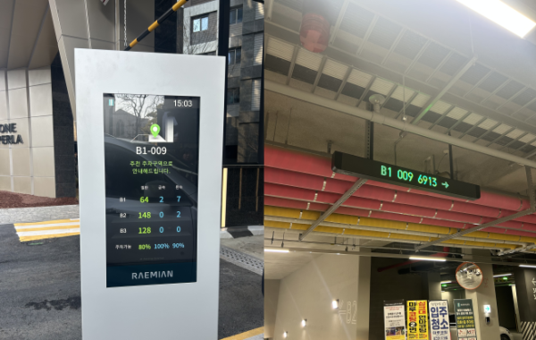 주차 구역에 도착하면 해당 위치에 설치된 전등이 초록색으로 깜빡인다. 차를 세우고 주차를 완료하면 조명은 자동으로 꺼진다. 고개를 연신 돌리며 빈자리를 찾을 필요 없이 AI가 제시하는 안내만 따라가면 주차가 끝난다. 이 단지는 비교적 규모가 크지 않아 동선이 단순한 편이지만 동별·라인별로 지하주차장이 넓게 펼쳐진 대단지에서는 체감 편의성이 더 클 것으로 보인다.