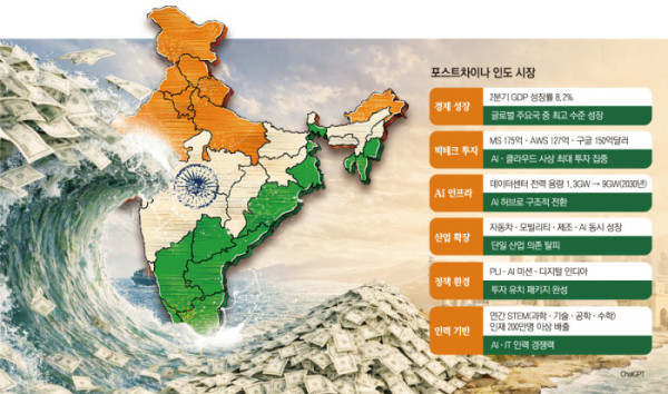 이 같은 투자의 배경에는 인도가 갖춘 구조적 조건 때문이다. 인도는 대규모 전력 확보가 가능하고 광활한 부지와 상대적으로 낮은 토지 비용을 갖춘 데다, AI와 IT 산업을 뒷받침할 수 있는 STEM(과학ㆍ기술ㆍ공학ㆍ수학) 인재 풀이 풍부하다. 여기에 13억 명에 달하는 인구와 빠르게 성장하는 내수 시장, 정부 주도의 디지털화 정책이 결합되며 AI 인프라 구축에 최적화된 환경이라는 평가다.