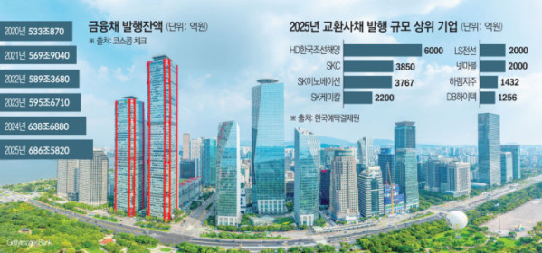 16일 IB 업계에 따르면 올해 은행·보험·증권사 등이 발행한 신종자본증권과 후순위채 규모는 42조9780억 원으로 집계됐다. 전년(32조80억 원) 대비 큰 폭 증가한 수치다. 같은 기간 금융채 발행 잔액도 686조5820억 원으로 역대 최대를 기록했다. 금융채 잔액은 2020년 533조 원에서 지난해 639조 원으로 꾸준히 증가세다.