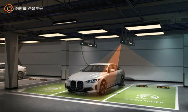 ㈜한화 건설부문이 화재감지 기능을 추가한 차세대 천장형 전기차 충전 시스템 ‘EV 에어스테이션’의 개발을 완료하고 한화포레나 단지에 본격 도입한다고 17일 밝혔다.