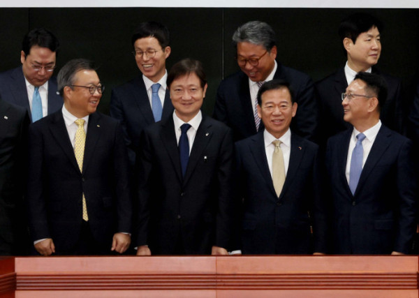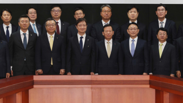 ▲17일 서울 여의도 금융투자협회에서 열린 ‘금융감독원장-자산운용사 CEO 간담회’에 앞서 이찬진 금감원장과 서유석 금투협회장, 자산운용사 대표 등이 기념촬영을 하고 있다. 신태현 기자 holjjak@