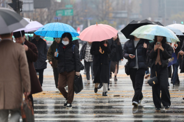 ▲서울 종로구 광화문네거리에서 우산을 쓴 시민들이 이동하고 있다. (연합뉴스)