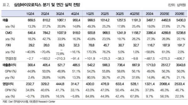 이 연구원은 “의약품 관세 및 생물보안법 이슈로 미국 내 생산 단가가 상승하는 환경을 감안하면 삼성바이오로직스의 미국 투자는 이익률 부담보다는 중장기 수주 확대 측면에서 의미가 있을 것으로 판단한다”고 밝혔다.