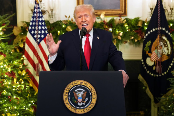 ▲도널드 트럼프 대통령이 17일(현지시간) 백악관 외교 접견실에서 대국민 연설을 하고 있다. (워싱턴D.C./AP연합뉴스)