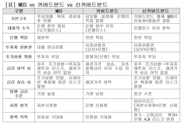 국내에 도입된 기존 독일식 스트레이트 커버드본드로는 시장금리 변동에 따른 대응 문제를 충분히 흡수하지 못한다. 장기 고정금리 주담대는 조기상환이 잦은 반면, 만기 일시상환 구조의 스트레이트 커버드본드는 자산의 조기상환 특성을 부채에 반영하지 못하기 때문이다. 그 결과 금리 상승기뿐 아니라 금리 하락기에도 자산과 부채 간 현금흐름 불일치가 발생한다.