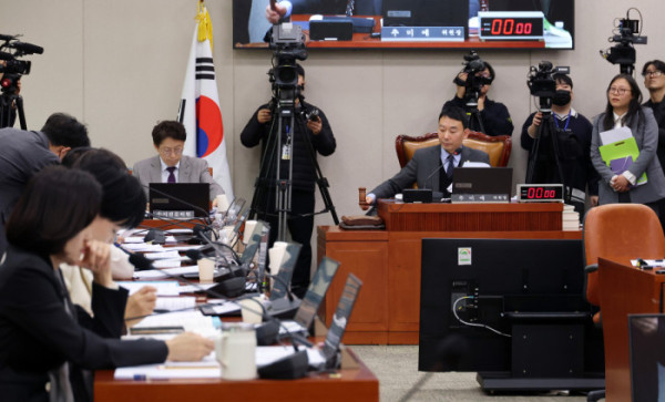 ▲18일 국회에서 열린 법제사법위원회 전체회의에서 김용민 위원장 직무대행과 여야 의원들이 학교급식법 일부개정법률안 등 상정 법안을 처리하고 있다. (연합뉴스)