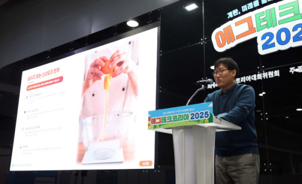 ▲19일 서울 서초구 aT센터에서 열린 ‘에그테크코리아 2025’(EggTech Korea 2025)에서 권세인 에임비랩 팀장이 투자IR데모데이에 참여하고 있다. 이투데이가 주최하는 '에그테크코리아 2025'는 스마트양계·스마트팜 기술, 동물복지 및 HACCP 생산공정, 로컬푸드 개발, 친환경 패키징, 유정란·디저트 등 건강한 먹거리 산업의 전 과정을 대중에 공개하는 국내 최초의 전시회로 21일 까지 진행된다. 이번 행사는 ‘계란·미래·K 푸드·웰니스’를 핵심 키워드로, 60개사 100부스가 참여하는 대규모 B2C·B2B 융합형 페스티벌로 꾸며진다. 1270만 구독자를 보유한 국내 대표 먹방 크리에이터 쯔양이 홍보대사로 나서며, 의학 유튜브 채널 ‘닥터프렌즈’(140만 구독자)와 '닥터딩요'(81만 구독자)가 건강·식품안전 관련 토크콘서트에 참여한다. 신태현 기자 holjjak@