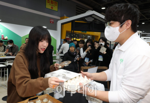 쯔양은 전시장에 들어서자마자 국내 대표 계란 유통 전문기업 ‘조인(Join)’ 부스를 가장 먼저 찾았다.