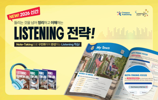 리스닝 프레임워크는 듣기 내용을 기록하고 구조화해 이해력을 높이는 것을 목표로 한다. 듣는 동안 중요한 정보를 선별하고 활용해 시험과 수행평가에 적용할 수 있도록 구성한 것이 특징이라는 게 웅진컴퍼스의 설명이다.