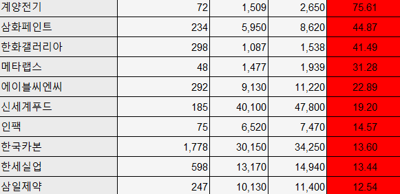 에프앤가이드에 따르면 이번 주 가장 큰 상승률을 기록한 종목은 계양전기로 한 주간 75.61% 상승했다.