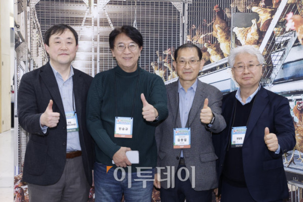 ▲민승규(왼쪽 두 번째) 전 농림축산식품부 차관이 20일 서울 서초구 aT센터에서 열린 ‘에그테크코리아 2025’(EggTech Korea 2025)에서 대회위원장인 김창길 전 농촌경제연구원장, 강호진 주한네덜란드대사관 농무관, 정일정 전 농림수산식품부 국장과 기념촬영을 하고 있다. 이투데이가 주최하는 '에그테크코리아 2025'는 스마트양계·스마트팜 기술, 동물복지 및 HACCP 생산공정, 로컬푸드 개발, 친환경 패키징, 유정란·디저트 등 건강한 먹거리 산업의 전 과정을 대중에 공개하는 국내 최초의 전시회로 21일 까지 진행된다. 이번 행사는 ‘계란·미래·K 푸드·웰니스’를 핵심 키워드로, 60개사 100부스가 참여하는 대규모 B2C·B2B 융합형 페스티벌로 꾸며진다. 1270만 구독자를 보유한 국내 대표 먹방 크리에이터 쯔양이 홍보대사로 나서며, 의학 유튜브 채널 ‘닥터프렌즈’(140만 구독자)와 '닥터딩요'(81만 구독자)가 건강·식품안전 관련 토크콘서트에 참여한다. 조현호 기자 hyunho@