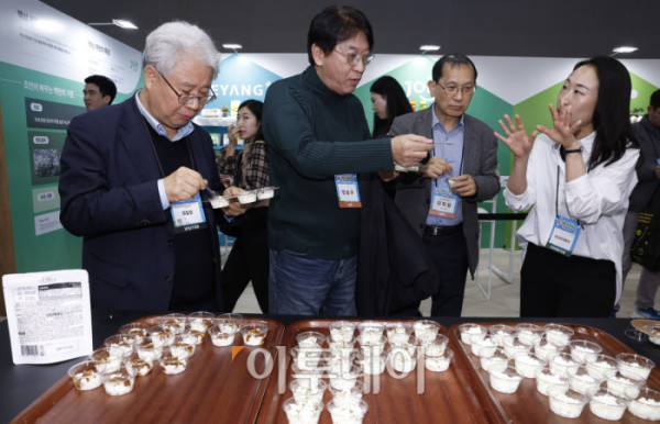 ▲민승규(왼쪽 두 번째) 전 농림축산식품부 차관이 20일 서울 서초구 aT센터에서 열린 ‘에그테크코리아 2025’(EggTech Korea 2025) 조인 부스에서 에그 라이스를 시식하고 있다. 이투데이가 주최하는 '에그테크코리아 2025'는 스마트양계·스마트팜 기술, 동물복지 및 HACCP 생산공정, 로컬푸드 개발, 친환경 패키징, 유정란·디저트 등 건강한 먹거리 산업의 전 과정을 대중에 공개하는 국내 최초의 전시회로 21일 까지 진행된다. 이번 행사는 ‘계란·미래·K 푸드·웰니스’를 핵심 키워드로, 60개사 100부스가 참여하는 대규모 B2C·B2B 융합형 페스티벌로 꾸며진다. 1270만 구독자를 보유한 국내 대표 먹방 크리에이터 쯔양이 홍보대사로 나서며, 의학 유튜브 채널 ‘닥터프렌즈’(140만 구독자)와 '닥터딩요'(81만 구독자)가 건강·식품안전 관련 토크콘서트에 참여한다. 조현호 기자 hyunho@