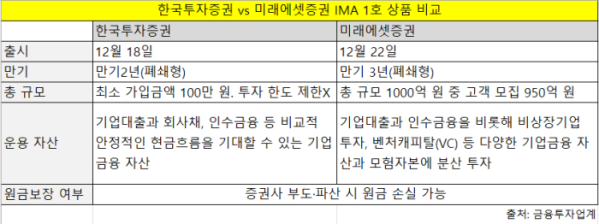 한국투자증권의 IMA 상품은 2년 만기의 폐쇄형 구조로, 최소 가입금액은 100만 원이며 1인당 투자 한도에는 제한이 없다. 운용 자산은 기업대출과 회사채, 인수금융 등 비교적 안정적인 현금흐름을 기대할 수 있는 기업금융 자산을 중심으로 구성된다. 미래에셋증권의 IMA는 만기 3년의 폐쇄형 상품으로 총 규모는 1000억 원이다. 기업대출과 인수금융을 비롯해 비상장기업 투자, 벤처캐피털(VC) 등 다양한 기업금융 자산과 모험자본에 분산 투자하는 구조다.
