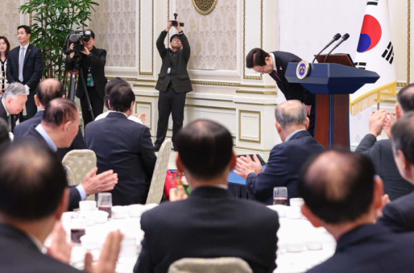 올해 대한민국의 성과에 대해서도 언급했다. 그는 "선진국 반열에 올라섰던 우리 대한민국이 지난해 느닷없는 계엄으로 인해 후진국으로 전락할 위기에서 가까스로 벗어나 다시 정상 궤도로 진입했다"며 "우리 국민들께서 힘을 모아주신 덕분에 생각보다 빠르게 회복하고 정상화될 수 있었다"고 평가했다.