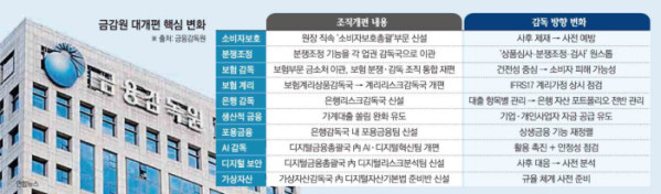 금융감독원이 대대적인 조직개편을 통해 감독 패러다임 전환에 나섰다. 소비자보호를 전면에 내세운 감독 체계 개편에 더해 은행의 자산 포트폴리오, 금융회사 임직원의 성과보수 체계까지 점검 대상으로 올리면서 금융사 전반의 의사결정 구조와 내부 통제 체계가 시험대에 올랐다는 평가가 나온다.
