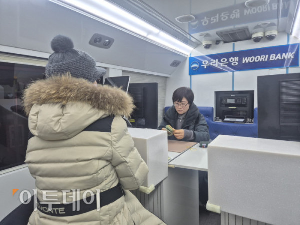 기온이 영하 5도까지 떨어진 22일 동짓날. 서울 노원구 서울시립북부장애인종합복지관 주차장에 파란색 버스 한 대에 고령자들이 삼삼오오 올라탔다. 한 손에 통장을 든 노인들이 눈에 띄었다. 우리은행 이동점포 '위버스(Webus)' 고객들이다.