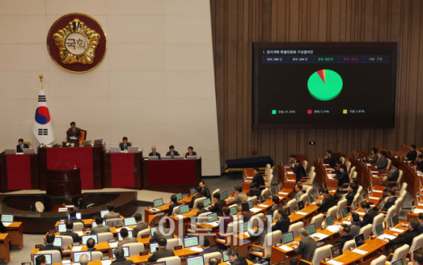 22일 서울 여의도 국회 본회의에서 정치개혁 특별위원회 구성결의안과 12.29 여객기 참사 진사규명을 위한 국정조사계획서 승인의 건이 가결되고 있다. 고이란 기자 photoeran@