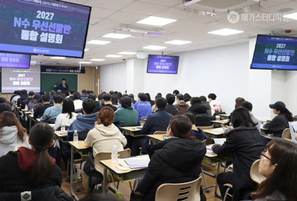 메가스터디교육이 운영하는 메가스터디학원이 지난 20일 서울 및 경기지역 7개 재수종합학원에서 동시 개최한 ‘2027 N수 우선선발반 통합 설명회’를 성황리에 마무리했다고 밝혔다.