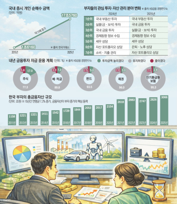 ◇ 금융투자가 자산 증가의 핵심 축 = 자산가들은 금융자산 비중을 꾸준히 늘리고 있다. 집이 사실상 유일한 자산 축이던 과거와 비교하면, 자산을 바라보는 시각과 선택의 방향이 뚜렷하게 달라지고 있다.