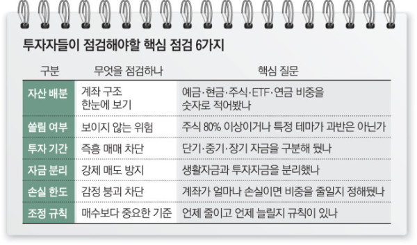 투자 현장에서는 성공할 종목을 맞히는 기술보다 계좌가 흔들려도 무너지지 않게 만드는 구조 설계가 장기 성과를 좌우한다는 인식이 있다. 단기 이벤트에 흔들려 매매를 반복하기보다 변동성을 전제로 한 운용 체계를 갖춘 계좌가 결국 살아남는다는 의미다. ‘무엇을 샀나’보다 ‘어떻게 굴릴 것인가’를 먼저 정리할 필요가 있다.