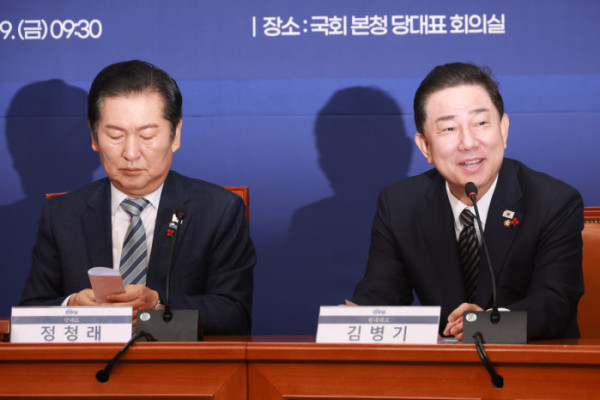 김 원내대표는 국민의힘의 통일교 특검 관련 입장에 대해서도 비판했다. 그는 "국민의힘은 통일교 특검에서 3자 추천을 거론하면서 법원행정처가 특검 후보자 2명 모두를 추천하는 방안을 제시했다"며 "사법부가 특검 추천권을 독점한다면 그런 특검을 뭐하러 하느냐"고 반문했다.