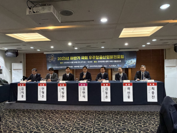 24일 오전 서울 중구 한국프레스센터에서 열린 '2025년 하반기 우주항공산업 발전포럼'에서 전문가들은 초소형 위성을 중심으로 한 민·군·관 협력과 제도 개선이 'K-스페이스' 산업화를 가르는 분기점이 될 것이라고 평가했다.