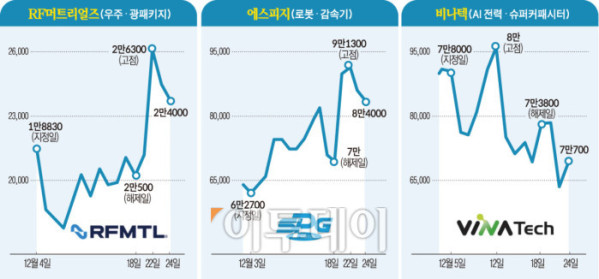 우주·로봇 관련 산업 코스닥 종목들이 투자경고 종목 지정에도 열기가 꺾이지 않고 강세를 보였다. 투자에 제약이 걸렸지만 테마 모멘텀이 주가를 끌어올리며 ‘경고 무풍지대’가 나타났다.