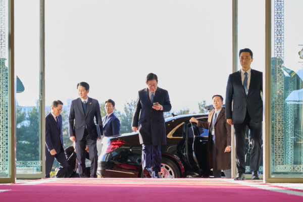 ▲이재명 대통령이 26일 용산 대통령실로 마지막 출근을 하고 있다. 이재명 대통령은 29일부터 청와대로 출근한다. 2025.12.26 (대통령실 제공)