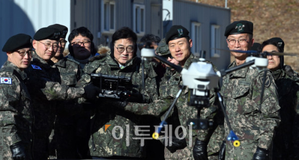 ▲우원식국회의장이 26일 오전 경기 양평군 옥천면 제11기동사단 108기계화보병대대를 방문, 부대에서 운용중인 드론의 조종체험을 하고 있다. 국회사진기자단