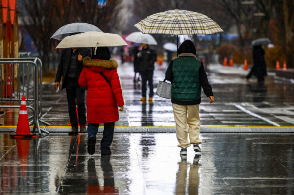 전국 대부분 지역이 흐린 가운데 오후부터 중부지방을 중심으로 전북과 경북 등지에서 비 또는 눈이 내리겠다.