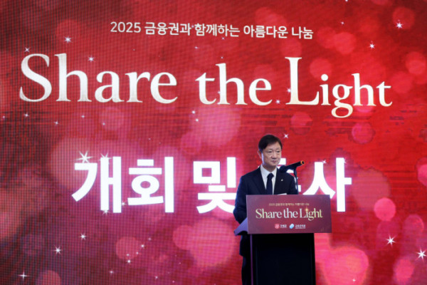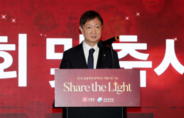 ▲이찬진 금융감독원장이 29일 서울 여의도 콘래드 호텔에서 열린 ‘아름다운 나눔’ 성금 전달식에서 축사를 하고 있다. 이날 행사를 통해 금융감독원과 21개 금융회사는 어려운 이웃을 위한 성금 16억2500만원을 구세군에 전달했다. 이는 지난 2011년 시작된 ‘아름다운 나눔’ 행사에서 가장 큰 규모다. 신태현 기자 holjjak@