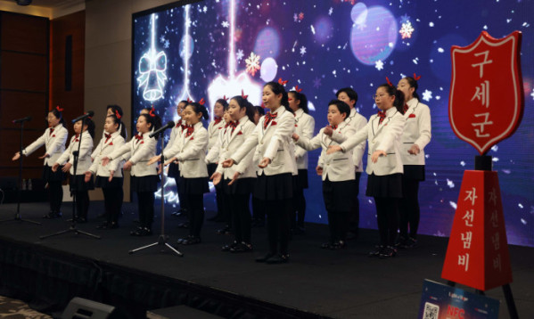 ▲29일 서울 여의도 콘래드 호텔에서 열린 ‘아름다운 나눔’ 성금 전달식에서 서울주니어합창단이 축하공연을 하고 있다. 이날 행사를 통해 금융감독원과 21개 금융회사는 어려운 이웃을 위한 성금 16억2500만원을 구세군에 전달했다. 이는 지난 2011년 시작된 ‘아름다운 나눔’ 행사에서 가장 큰 규모다. 신태현 기자 holjjak@