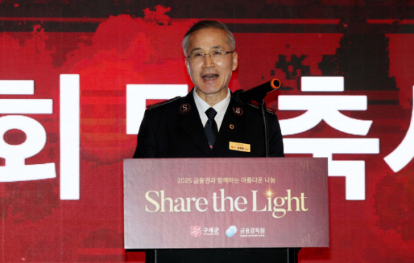 이찬진 금융감독원장과 김병윤 구세군 사령관, 금융회사 대표들이 참석한 가운데 29일 서울 여의도 콘래드 호텔에서 ‘아름다운 나눔’ 성금 전달식이 열렸다. 이날 행사를 통해 금융감독원과 21개 금융회사는 어려운 이웃을 위한 성금 16억2500만원을 구세군에 전달했다. 이는 지난 2011년 시작된 ‘아름다운 나눔’ 행사에서 가장 큰 규모다.