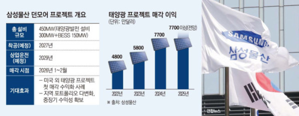 한편 삼성물산의 태양광 프로젝트 매각 이익은 △2022년 4800만 달러 △2023년 5800만 달러 △2024년 7700만 달러로 꾸준히 증가세다. 호주 매각 건이 내년으로 넘어갔지만, 올해도 이미 지난해 규모를 웃도는 매각 이익을 기록했다. 특히 매각 거래가 4분기에 집중되면서 연말에 견조한 수익을 확보한 것으로 분석된다.