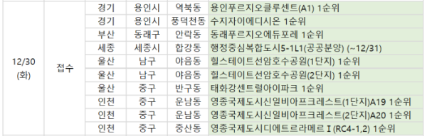 부동산 정보업체 부동산R114에 따르면 30일 오늘은 경기 용인시 '용인푸르지오클루센트(A1)', '수지자이에디시온', 인천 중구 '영종국제도시신일비아프크레스트(1·2단지)', '영종국제도시디에트르라메르Ⅰ(RC4-1,2)', 부산 동래구 '동래푸르지오에듀포레', 울산 남구 '힐스테이트선암호수공원(1·2단지), 중구 '태화강센트럴아이파크' 등 단지에서 1순위 청약 접수를 실시한다.