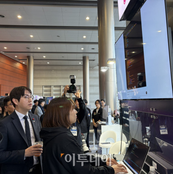 행사장 로비에 마련된 정예팀들의 ‘AI 체험부스’는 정예팀들이 개발한 AI 모델을 직접 경험하려는 관람객들로 활기를 띠었다. 학생과 연구자, 기업 관계자는 물론 일반 국민들까지 시연에 참여해 자유롭게 피드백을 주고받는 등 열띤 소통의 장이 펼쳐졌다. 하정우 수석 또한 부스를 둘러봤다. 특히 LG AI연구원 부스를 찾은 하 수석은 부스 관계자의 기술 설명을 경청하며 날카로운 질문을 던지는 등 깊은 관심을 보였다.