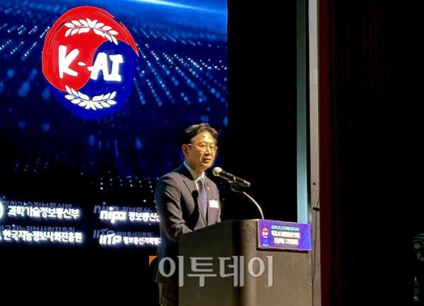 ▲30일 코엑스에서 열린 '독자 AI 파운데이션 모델 프로젝트 1차 발표회'에서 배경훈 과학기술정보통신부 장관이 축사를 하고 있다. (임유진 기자 newjean@)