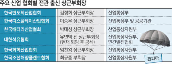 한 협회 관계자는 “기업들이 정부와 소통해야 할 사안이 많은 만큼 회장은 기업인, 상근부회장은 정책 경험이 있는 인사로 구성하는 것이 효율적인 구조일 수 있다”며 “부처 또는 정치인 출신의 인사라고 모두 문제가 되는 것은 아니다”라고 말했다.