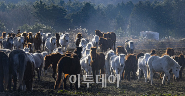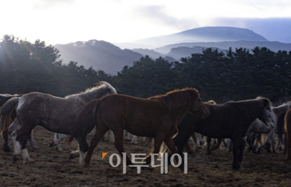▲병오년(丙午年) 새해 아침, 제주시 제주축산생명연구원에서 제주마들이 힘차게 걸음을 옮기고 있다. 을사년(乙巳年)은 코스피 4000 돌파, 삼성전자 주가 10만원 돌파, 누리호 4차 발사 성공 등 한국 경제와 산업 전반에 새로운 도약의 이정표가 세워졌다. 들판을 뛰어다니는 제주마처럼 힘차게 나아가는 새해가 되기를 기대한다. 조현호 기자 hyunho@