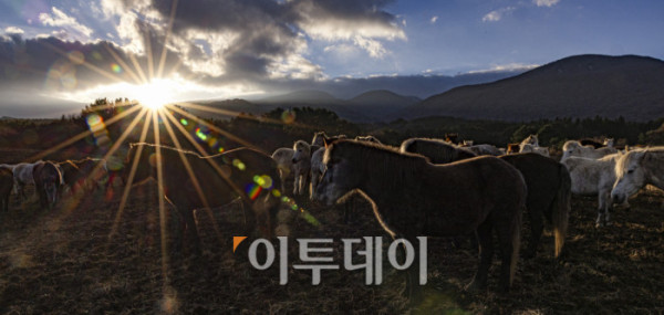 ▲제주시 제주축산생명연구원에 제주마들 뒤로 병오년(丙午年) 새해 첫 태양이 떠오르고 있다. 을사년(乙巳年)은 코스피 4000 돌파, 삼성전자 주가 10만원 돌파, 누리호 4차 발사 성공 등 한국 경제와 산업 전반에 새로운 도약의 이정표가 세워졌다. 들판을 뛰어다니는 제주마처럼 힘차게 나아가는 새해가 되기를 기대한다. 조현호 기자 hyunho@